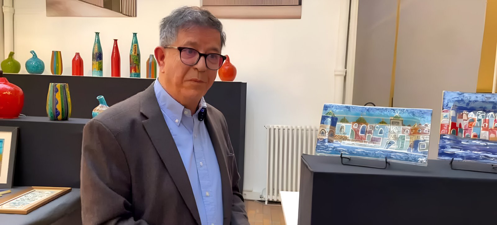 Vases, carreaux, fresques murales : les œuvres de Toufik Boumehdi s’inscrivent dans le temps et l’espace. Lignes pures, décors floraux, palette maîtrisée autour du bleu cobalt, turquoise, vert de cuivre et touches d’ocre. Chaque création est pensée comme une rencontre entre un lieu, une lumière, une mémoire. Parfois ornementales, parfois utilitaires, ses pièces dialoguent avec l’architecture, la nature et les âmes. La fameuse fresque monumentale d’Oran, composée de 52 000 carreaux, incarne cette volonté d’habiter les murs, d’élever l’artisanat au rang d’art public.